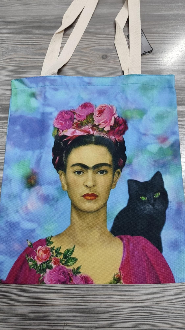 Borsa shopper tote Frida Kahlo nuova con cartellino con manici in tela, tasca interna con chiusura a zip.